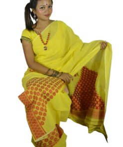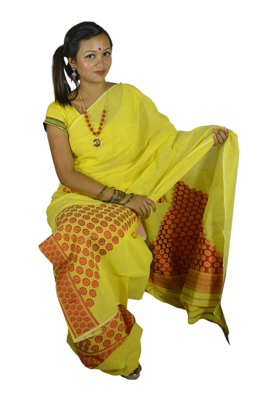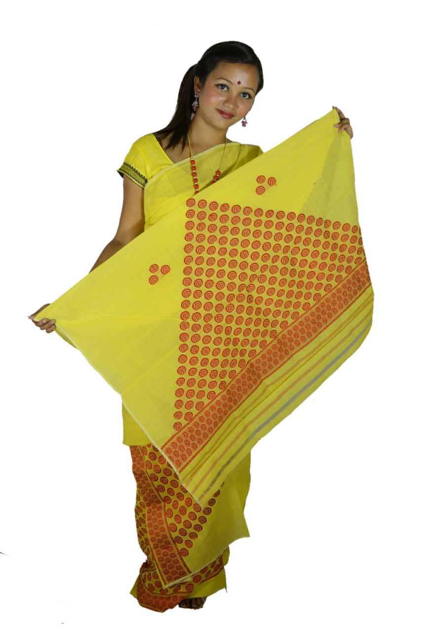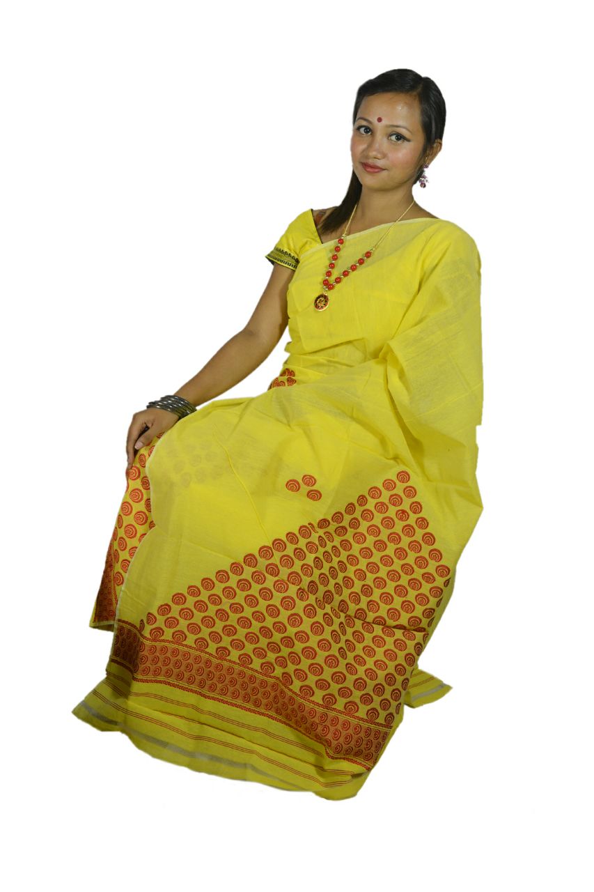 Simple yet elegant! Yellow colored full Chador Mekhela with a hint of assamese tradition is a must have for your wardrobe. Made in Assam.